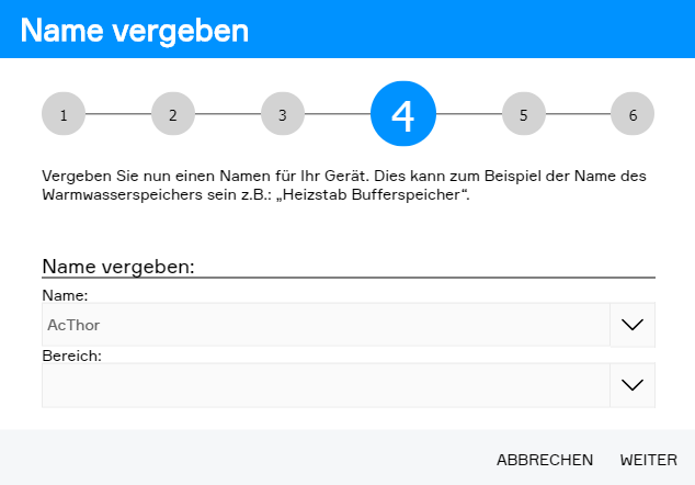 In Schritt 4 muss der Name und die Örtlichkeit vergeben werden. Dieser kann jederzeit verändert werden.