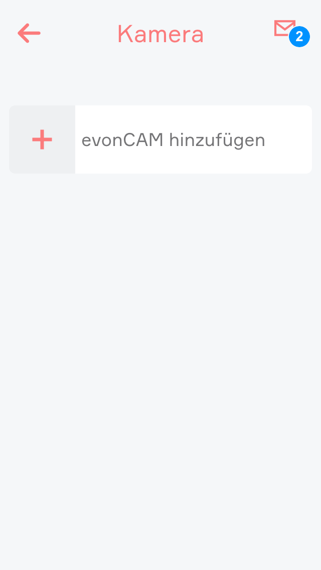 Um eine Kamera zu erstellen, müssen Sie in der App „Kamera“ auf das Kästchen „evonCAM hinzufügen“ klicken.