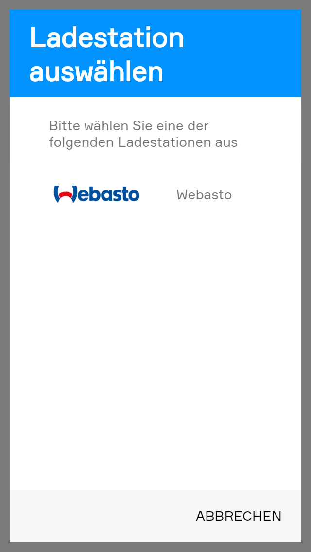 Im nun erscheinenden Popup wählen Sie bitte Ihre Webasto Ladestation aus.