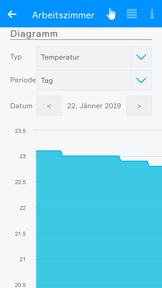 Am Ende des Panels finden Sie ein Diagramm, welches alle Aufzeichnungen für einen Wert über einen bestimmten Zeitraum darstellt. Sie können sowohl den Wert als auch den Zeitraum in den zugehörigen Dropdowns auswählen.