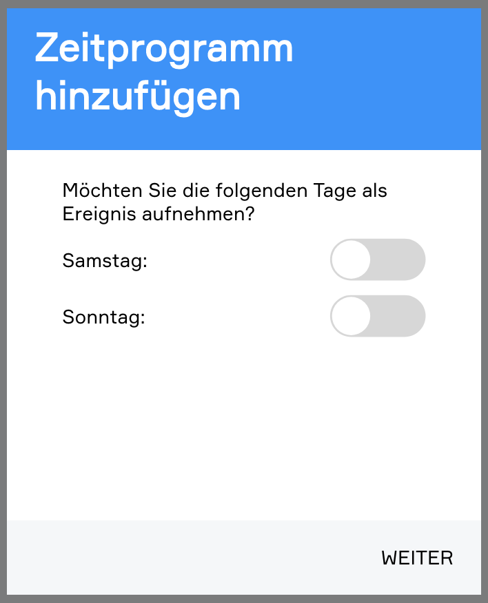 Verknüpfen Sie hier andere Apps oder digitale Eingänge, um das Wochenprogramm darüber zu deaktivieren bzw. wieder zu aktivieren.