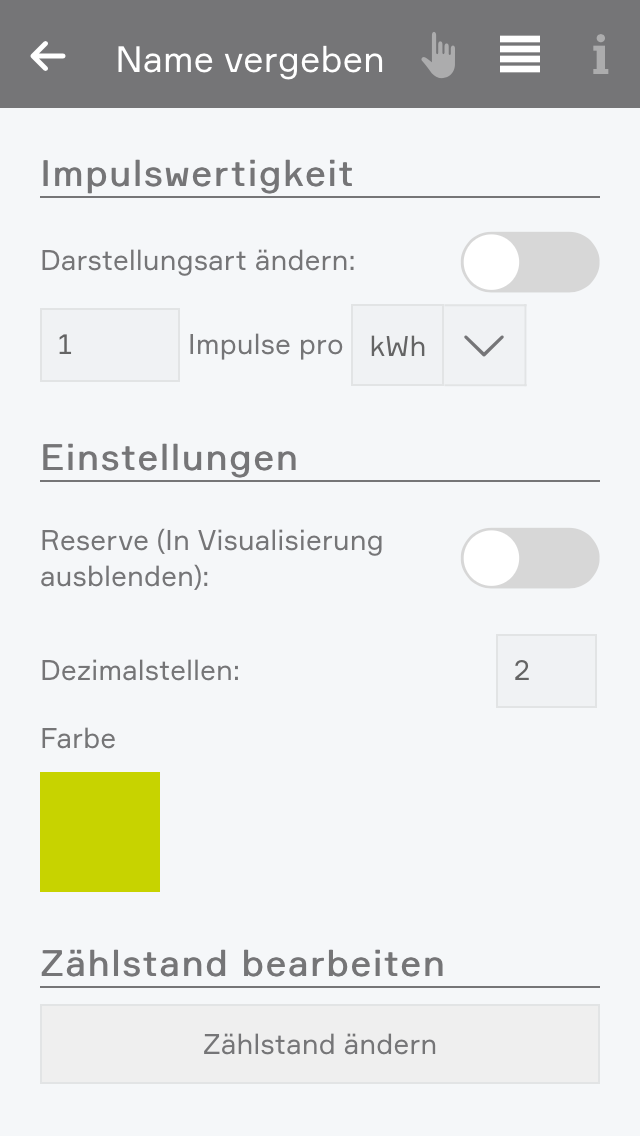 Sie können bei jedem Zähler verschiedene Einstellungen vornehmen, die bestimmen was gezählt wird (z.B. kWh) sowie welche Grenzwerte gelten sollen.