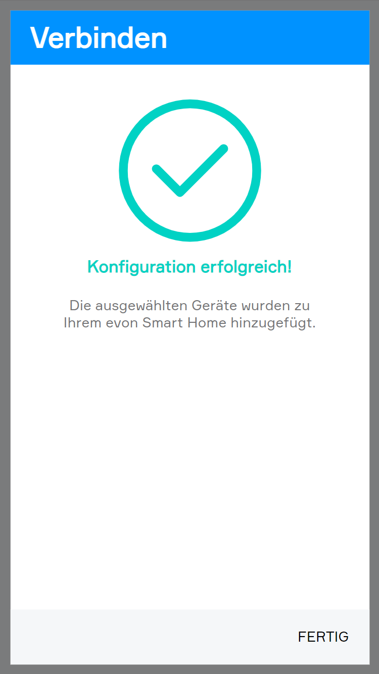 Nach der erfolgreichen Aktivierung des evon Smart Home Smart Home Skill und der Suche nach Geräten ist eine weitere Konfiguration nicht notwendig.