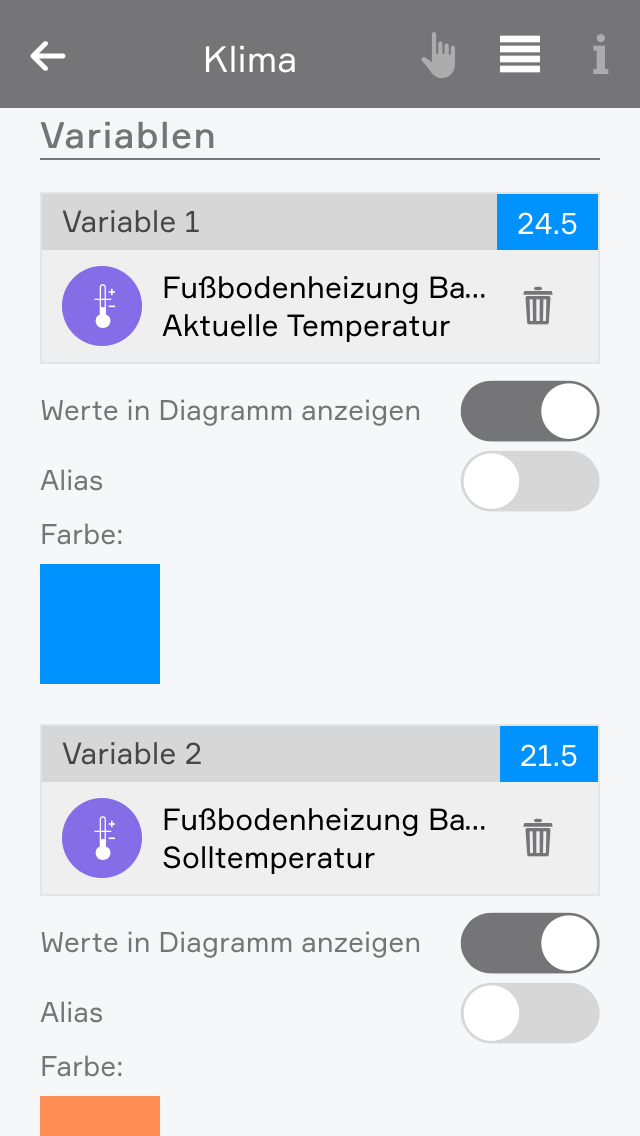 Mit der ‘Zirkulationspumpe’ können Sie passende Pumpensysteme konfigurieren und zeitlich steuern.