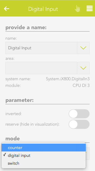 The object panel for this window contact will display whether this window is open or closed. If “open” and “closed” are reversed, i.e. the object panel shows a window to be open although it is actually closed, then activate the option “invert” in the operator panel.