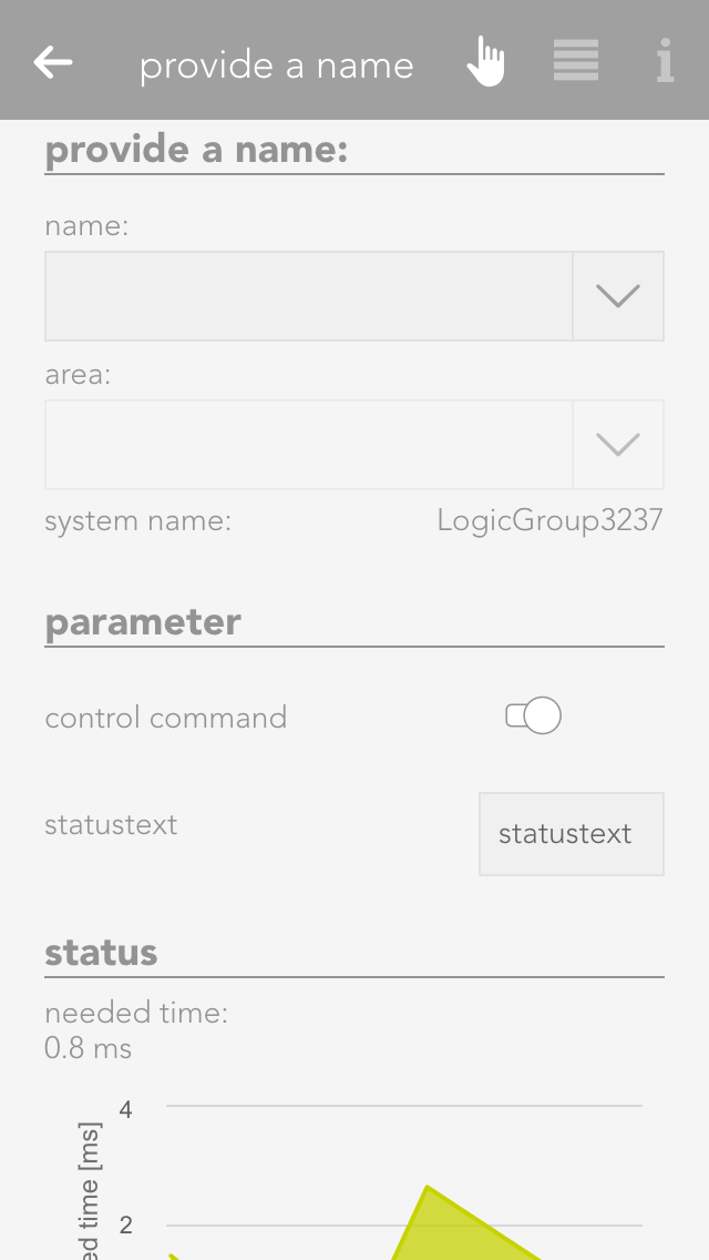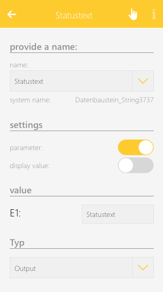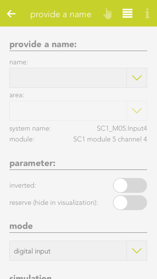 To create a window contact, open the window app under “all apps” and select “create window contact”. This opens the operator panel and the newly created window contact. It is important to first give the contact a name and optionally the location of the window.