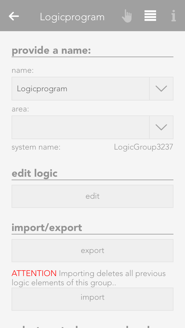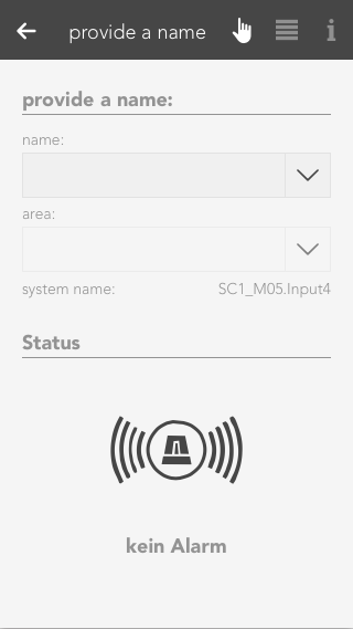 If you want to activate the alarm system, you can either do this via the app by opening the alarm system (“all apps” –“alarm system”) and select the button “activate” in the operator panel for the alarm system, or you define a button to activate the alarm and you use this button (how you do this is described in the chapter configuration). Deactivating the alarm is done the same way via the app, only that you have to enter a password. Deactivation via a button works identically to activation.