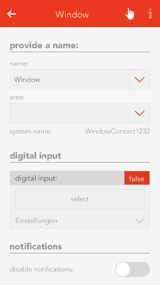 If you have simply just one window contact connected to a digital input, then you must create a “window contact”. However, if you have an electric window that you wish to integrate into your system, then you must create an “electric window”. Electrical windows are connected to blind modules, since they work according to the same principle.