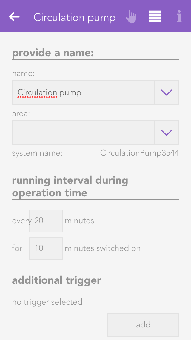 Select the trigger and the duration for which the circulation pump should be additional active for a short period of time.
