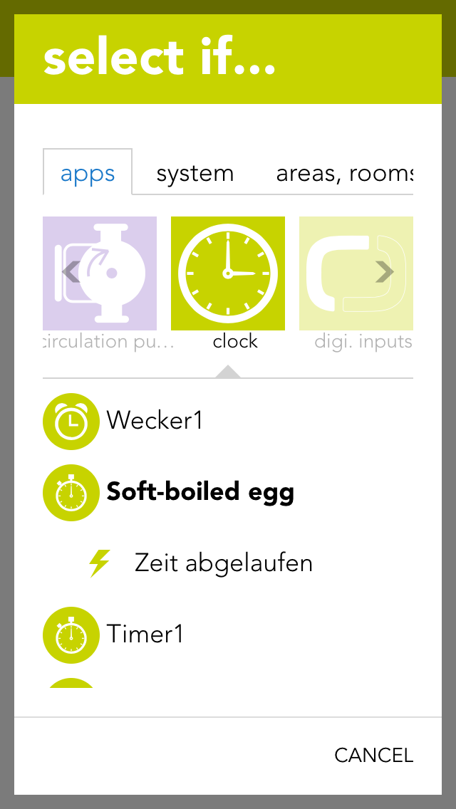 To create an alarm clock, a timer or a weekly programme, simply open the app “clock” and select “add clock”. A window then opens offering you a selection of elements you can create.