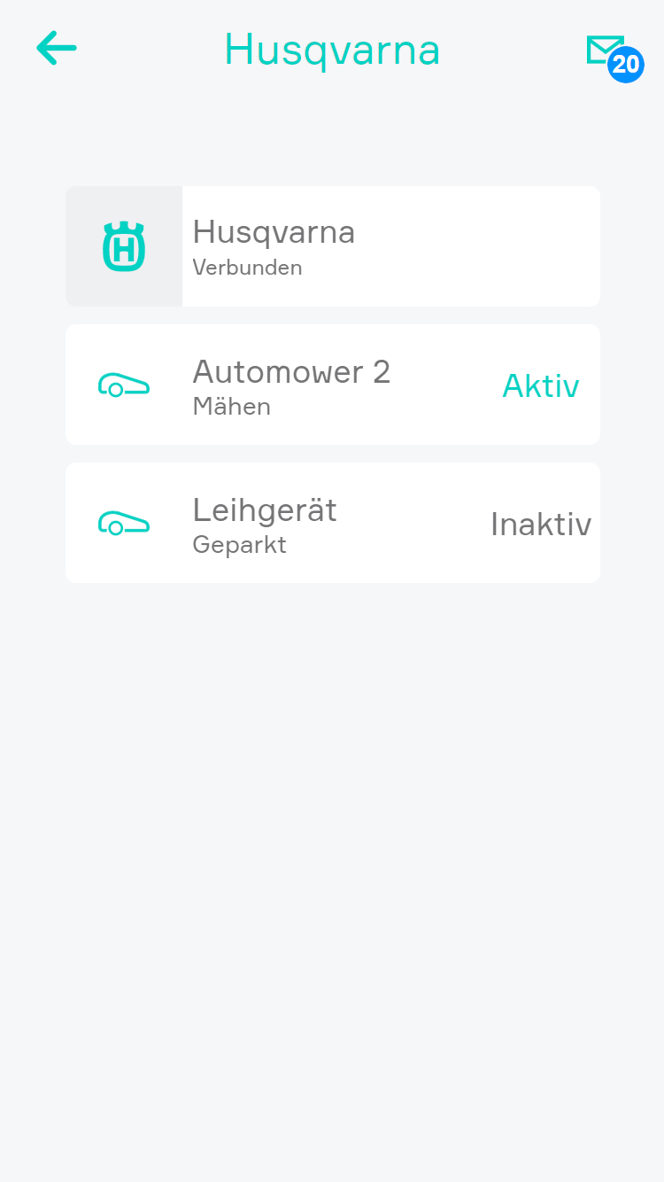 Im Husqvarna Object Panel wird der Verbindungsstatus zum verwendeten Account angezeigt.