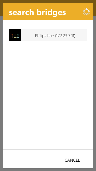 evon Smart Home will now start to search for all available Philips Hue Bridges inside your local network and lists them inside a popup.