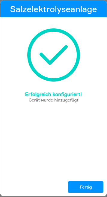 Die Salzelektrolyseanlage wurde erfolgreich hinzugefügt.