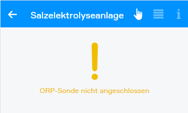 Diese Warnung sagt aus, dass die ORP-Sonde nicht angeschlossen ist.
