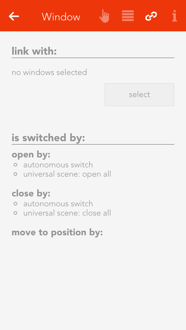 You can also select the actions “go to position” (go to a window position you have defined), “open” and “close” in the “THEN” statement of a scene.