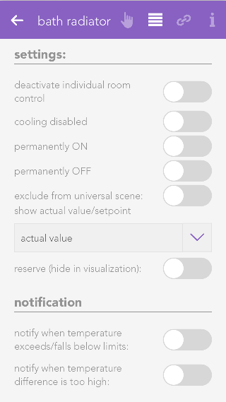 Neben der Bedienung über diese Ansicht, kann auch innerhalb der evonHOME Logik App auf alle Register zugegriffen werden.