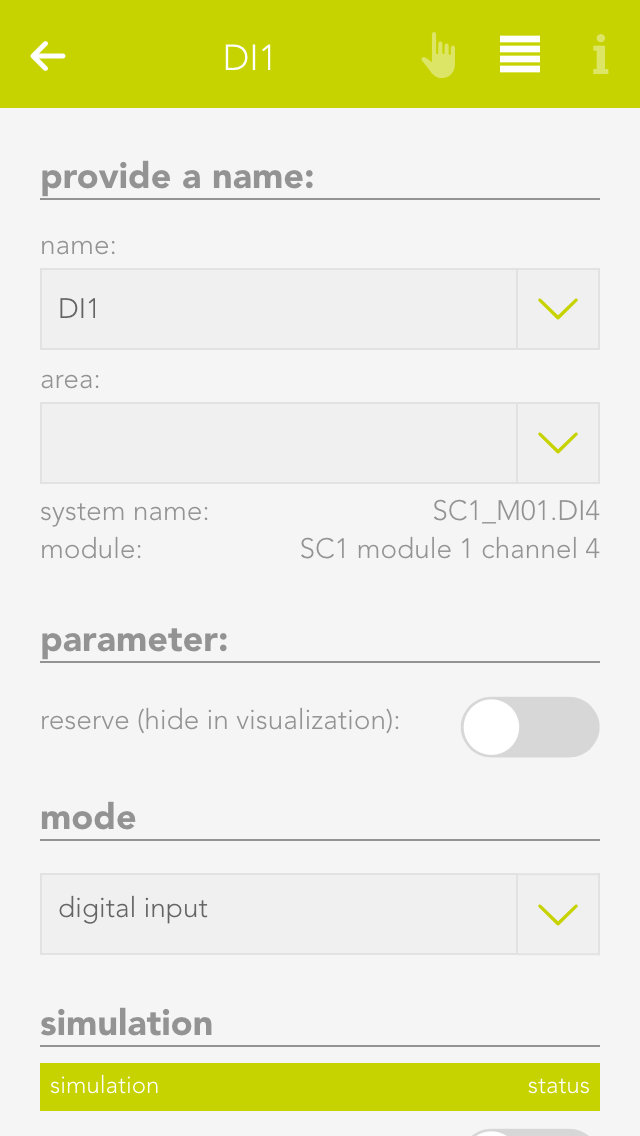 Digital Input 1 – Predefined as Home Off - Switch