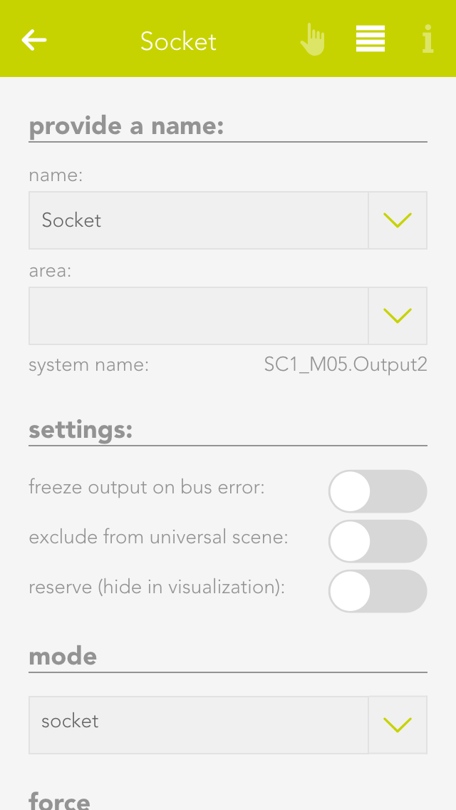 Zusätzlich lässt sich einer der Register als Anzeigewert auswählen, welcher im ObjectPanel deines Modbus Gerätes sichtbar ist und Farbe sowie Icon ändern.