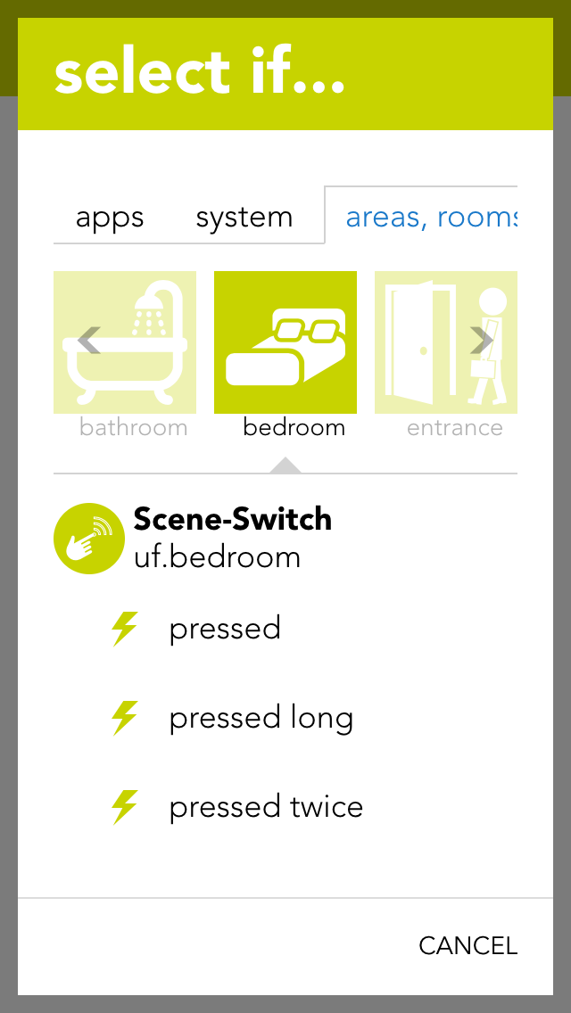 Du kannst die Klingel und Lichttaste der Sprechanlage auch als Auslöser für das Erstellen von Szenen in der betreffenden App verwenden.
