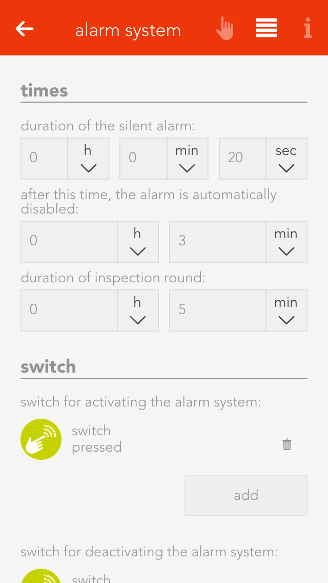 Using our bedroom example, we plan to add an alarm system and we need a digital input and a switch to activate and deactivate the alarm, and a closing contact for the window and balcony door.