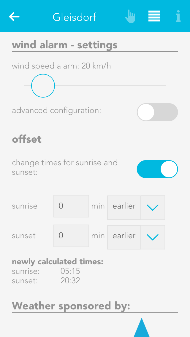If you are not satisfied with the time for sunset and sunrise, you can change then by activating the option “change sunrise and sunset times” and changing the times accordingly.