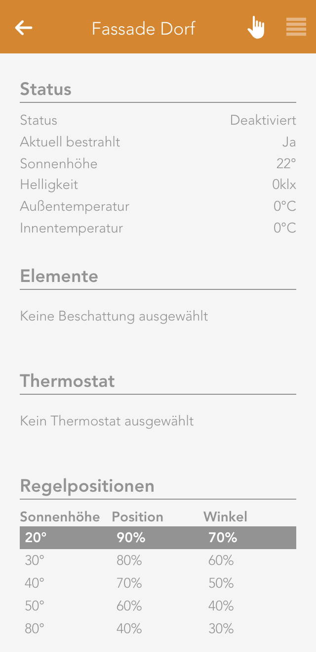 To create an electric window, open the app “shading” and select the blind the window is connected to. Navigate to the parameter panel and select the “type” “window”.