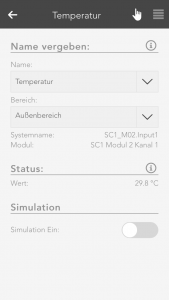 If you want to know what happens if the temperature rises above or falls below a certain value, then you don’t need to cool or heat the temperature sensor. You can use the option “simulation” in the operator panel. Simply activate the checkbox “simulation on” and enter the desired temperature in the input field that appears. Warning, do not forget to deactivate the simulation when you have finished testing.