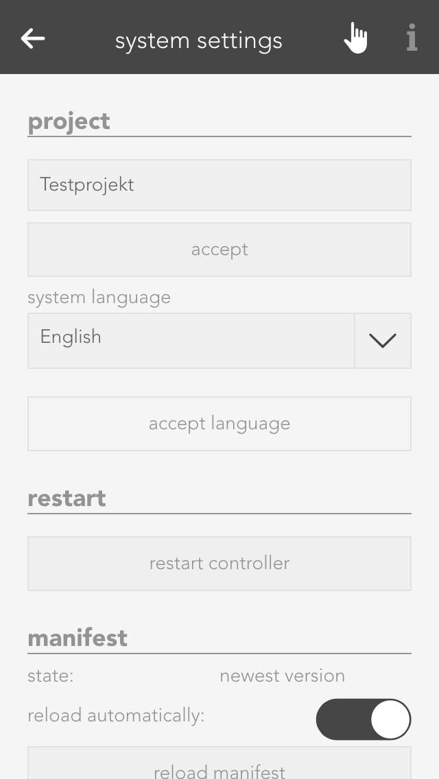 The time zone lets you allocate the desired time zone to your controller. The item “set time” allows you to set the time in the controller. The button “use client time” allocates the time used by your device (mobile phone, tablet) to the controller. The button “set time manually” lets you set the time and the date for your controller yourself.