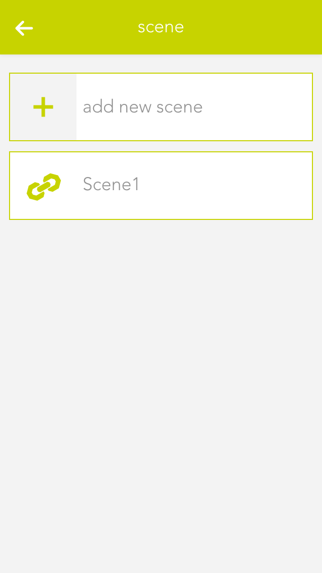 To create a scene, simply open the app “scenes” and select “create new scene”. Then open the operator panel for this scene. Enter the name and optionally a room. Then you can start with the configuration (described below).