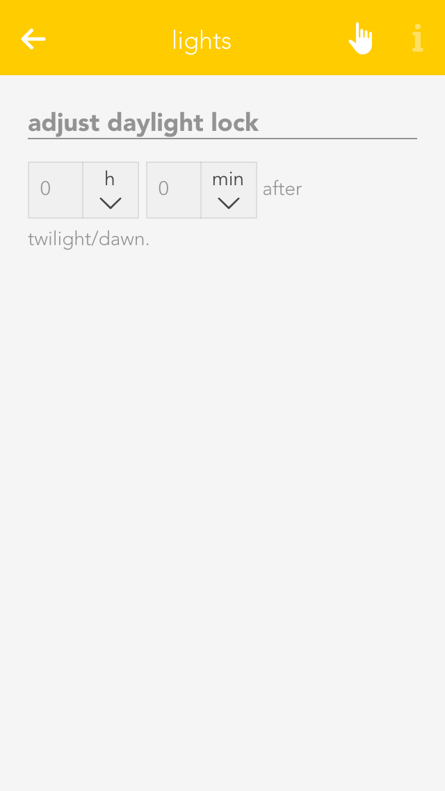 This option lets you configure the light to switch itself off after a certain time. If you have activated this option, then the software shows you the settings for the time the light is to remain switched on. You can change this time to anything you want.